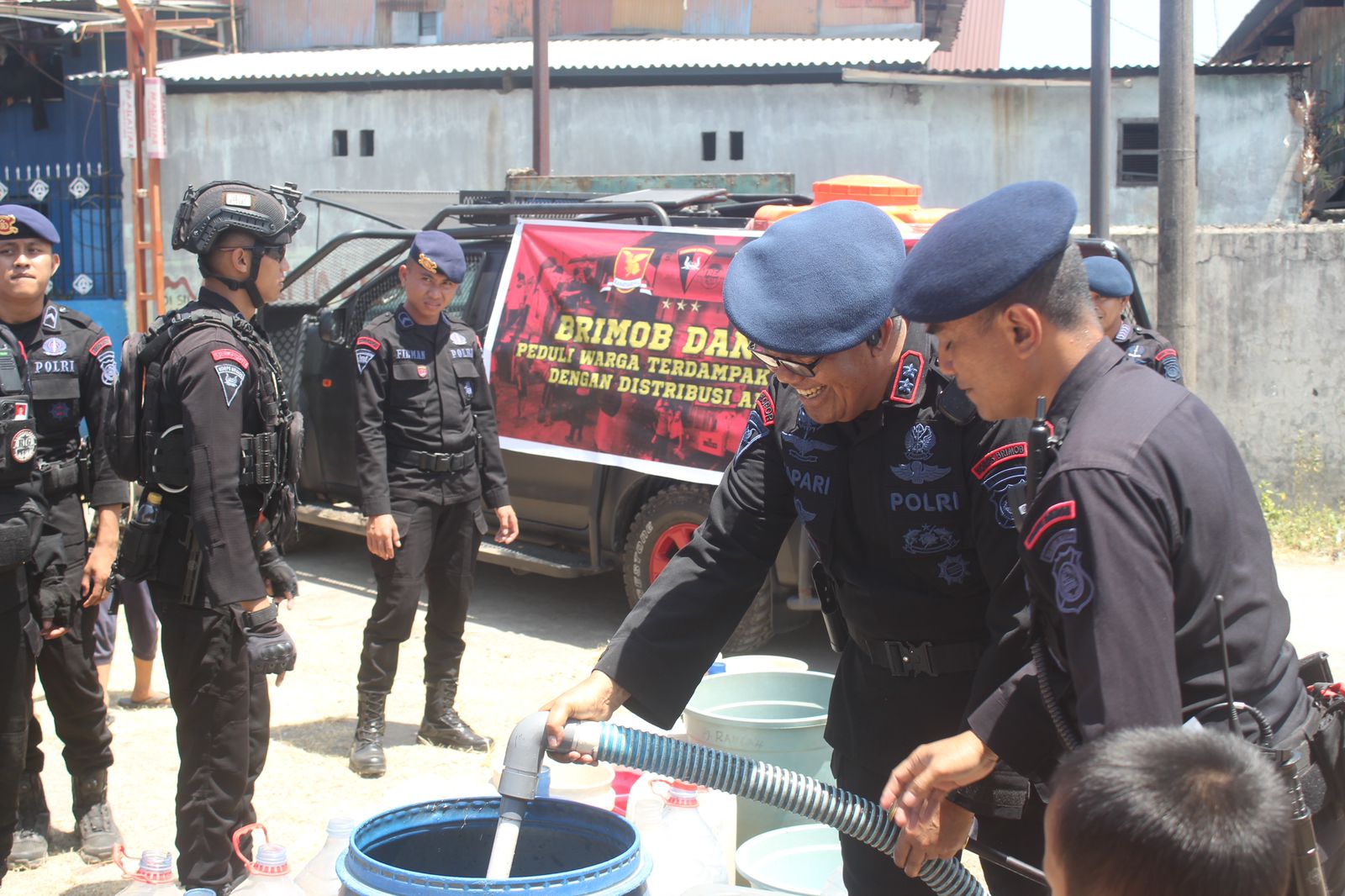 Makassar – lintassulawesinews.com – Kekeringan yang melanda wilayah Kota Makassar, membuat beberapa wilayah mengalami kekurangan air. Satuan Brimob Polda Sulsel bekerjasama dengan Perusahaan Daerah Air Minum ( PDAM ) Kota Makassar menyalurkan 9.200 Liter air bersih kepada warga masyarakat yang mengalami krisis air bersih