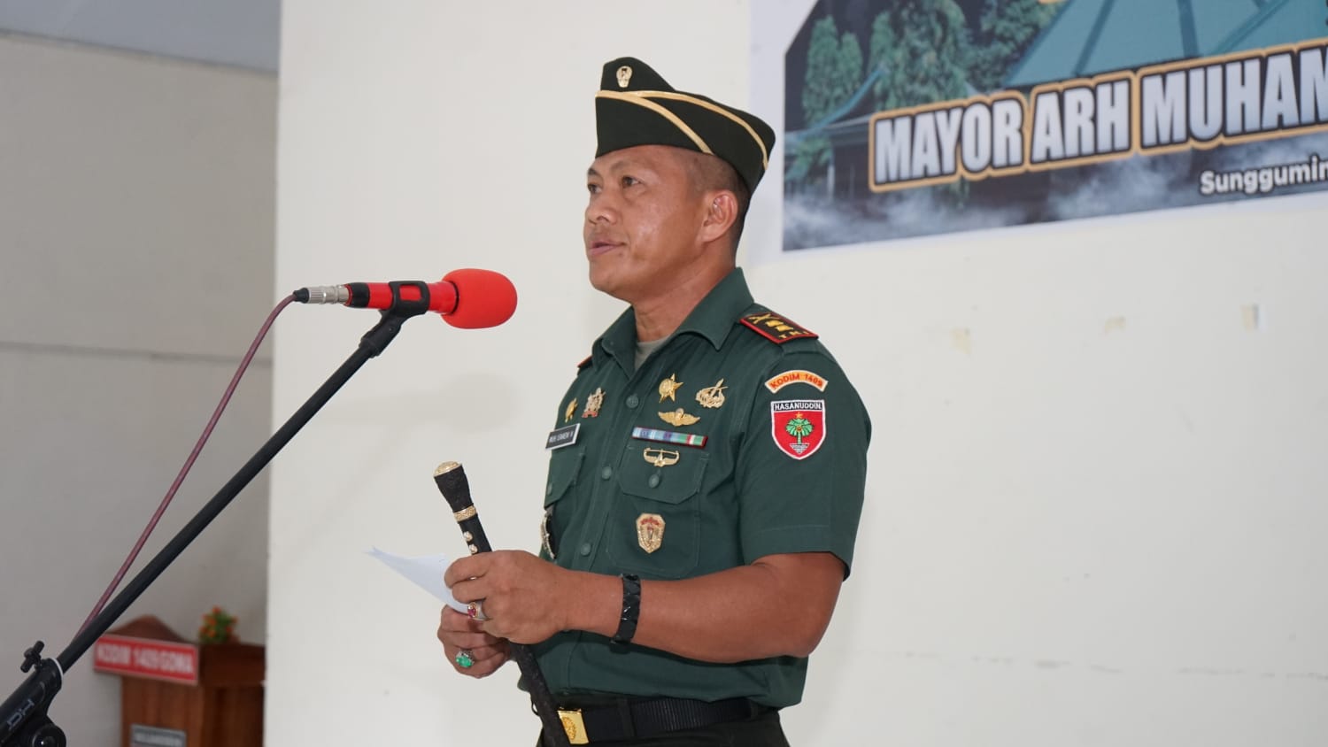 Mayor Arh Muhammad Yuliansyah, S.A.P Kasdim 1409/Gowa dalam sambutannya menyampaikan, Terima kasih atas kesempatan yang diberikan kepada kami, momen ini merupakan suatu kebanggaan tersendiri bagi saya dan keluarga.