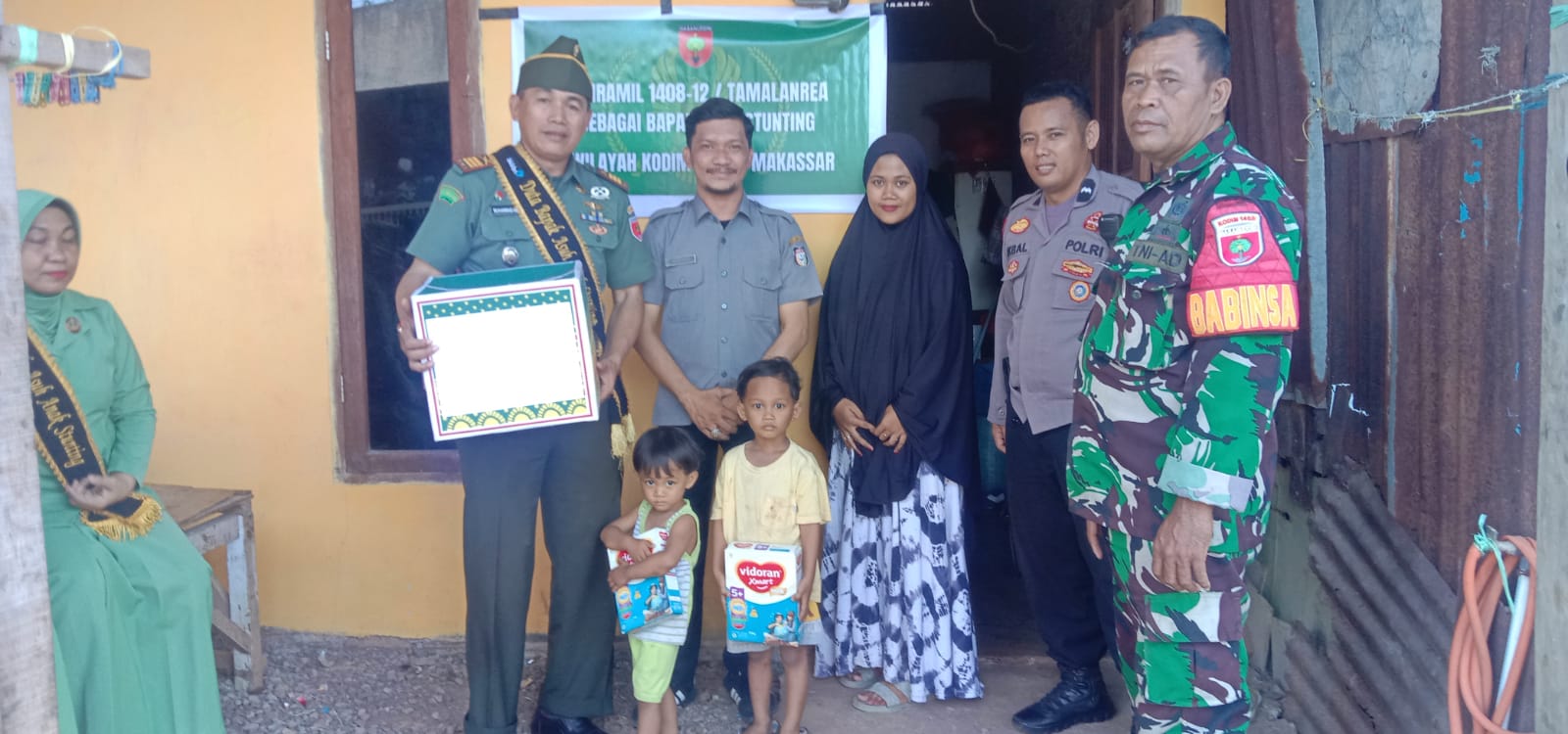 MAKASSAR – lintassulawesinews.com – Kepedulian Danramil 12/Tamalanrea (Kapten Inf Muh Amir) bersama ibu menjadi Bapak dan Bunda Asuh Anak Stunting A.n Hilal, di Kecamatan Biringkanaya.