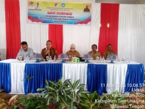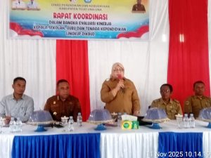 Sulteng- lintassulawesinews.com-Bertempat di gedung PGRI Kecamatan Tojo Selasa ( 11/10/2025) Kadis Pendidikan dan Kebudayaan Tojo Una una Aspan P. Taurenta, SH, dan Wakil Bupati Tojo Una una Hj.Surya ,S.sos,M.Si. di sambut dengan baik dan dengan semangat Tutuwuri Handayani oleh seluruh peserta Rakor ( Rapat Koordinasi) dalam rangka evaluasi kinerja di lingkup Dinas Pendidikan dan Kebudayaan Tojo Una una – Sulawesi Tengah.