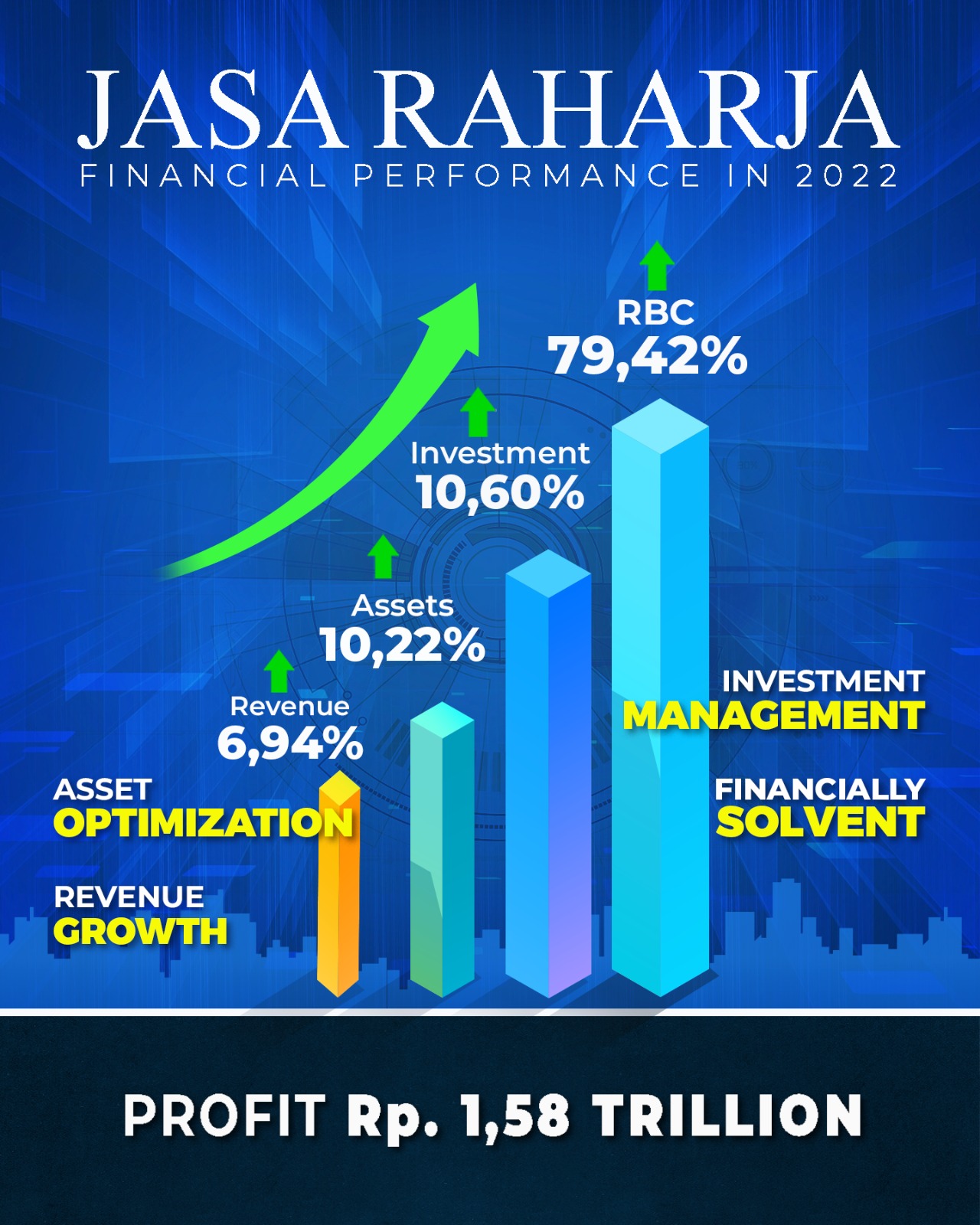 Direktur Utama Jasa Raharja Rivan A. Purwantono menyampaikan, investasi perusahaan mengalami peningkatan sebesar 10,60%, yakni Rp13,8 triliun pada tahun 2021, menjadi Rp15,3 triliun di tahun 2022, disisi pendapatan Jasa Raharja berhasil menorehkan kinerja positif dengan catatan pertumbuhan pendapatan sebesar 6,94%, yakni Rp 5,9 triliun pada tahun 2021, menjadi Rp 6,4 triliun di tahun 2022.