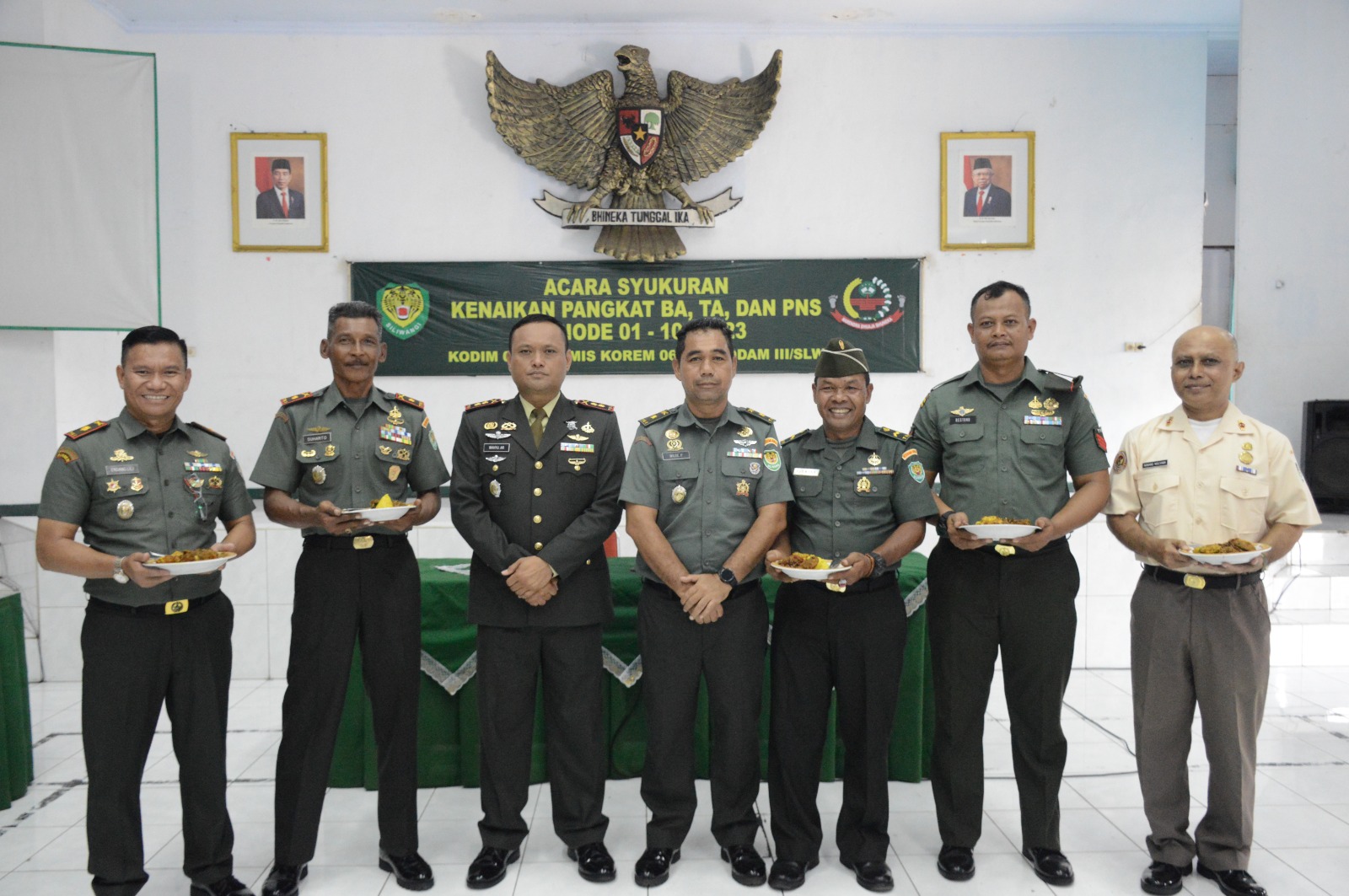 Dandim 0613/Ciamis  Letkol Inf Wahyu Alfian Arisandi mengucapkan selamat kepada para perwira, bintara, tamtama dan pns yang mendapatakan kenaikan satu tingkat lebih tinggi.